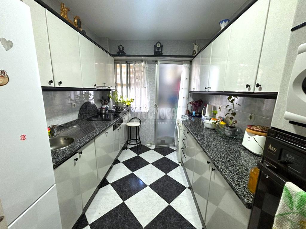 La cocina, funcional y práctica, se complementa con una terraza lavadero, perfecta para mantener el orden en casa. Este piso también cuenta con armarios empotrados que ofrecen un amplio espacio de almacenamiento. La vivienda está en buen estado.